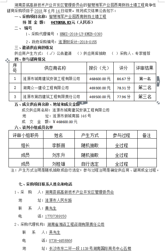 智慧湘軍產(chǎn)業(yè)園西南側擋土墻工程 競爭性磋商成交結果公告