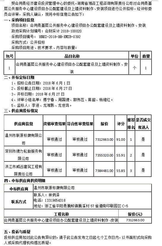 會同縣基層公共服務(wù)中心建設(shè)項目辦公配套建設(shè)及上墻資料制作、安裝  公開招標中標公告
