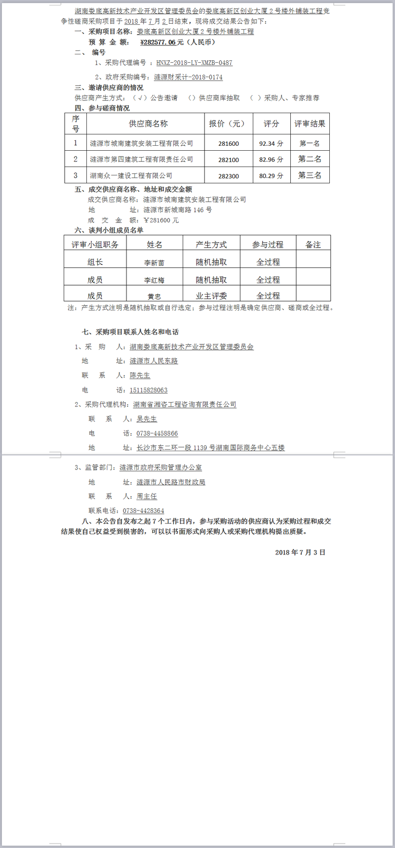 婁底高新區(qū)創(chuàng)業(yè)大廈2號(hào)樓外鋪裝工程競(jìng)爭(zhēng)性磋商成交結(jié)果公告