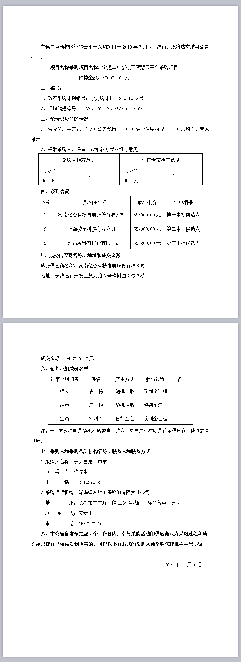 寧遠(yuǎn)二中新校區(qū)智慧云平臺(tái)采購項(xiàng)目競(jìng)爭(zhēng)性談判成交結(jié)果公告