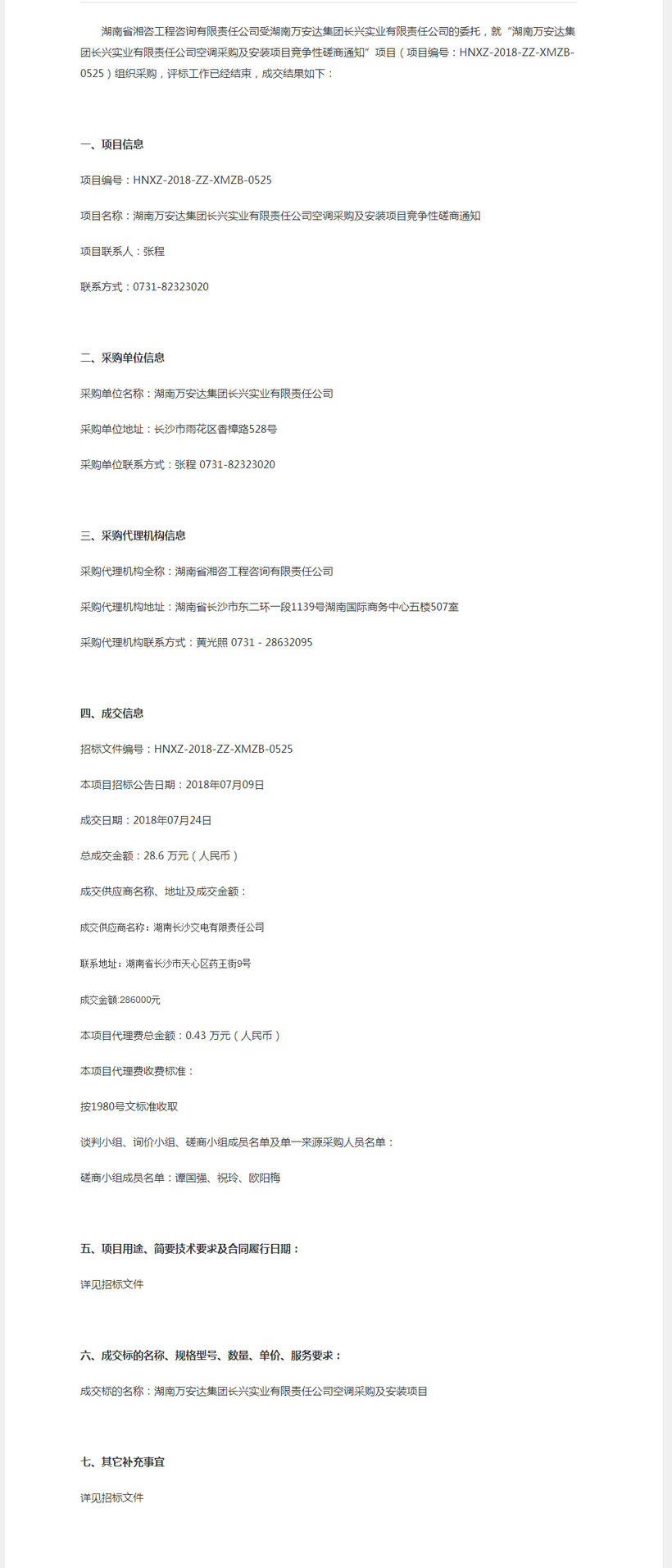湖南萬(wàn)安達(dá)集團(tuán)長(zhǎng)興實(shí)業(yè)有限責(zé)任公司空調(diào)采購(gòu)及安裝項(xiàng)目競(jìng)爭(zhēng)性磋商通知成交公告