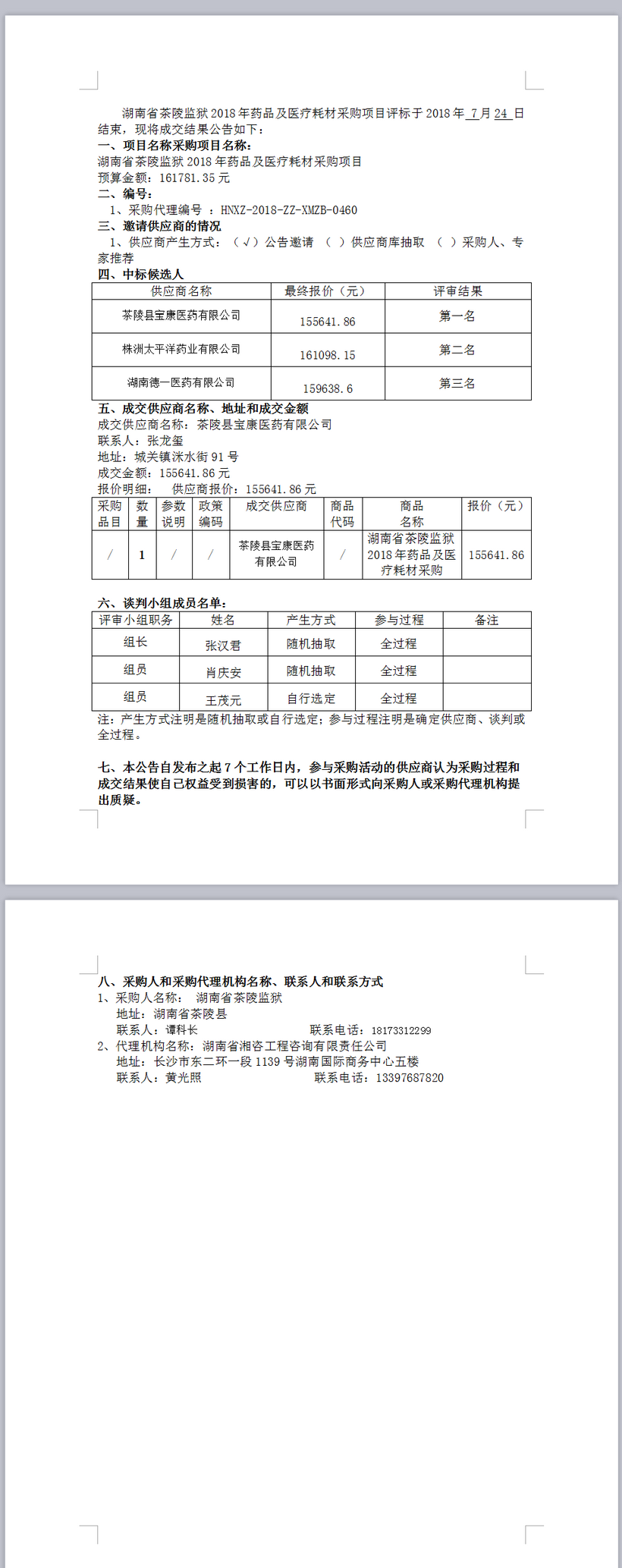 湖南省茶陵監(jiān)獄2018年藥品及醫(yī)療耗材采購項目成交公告