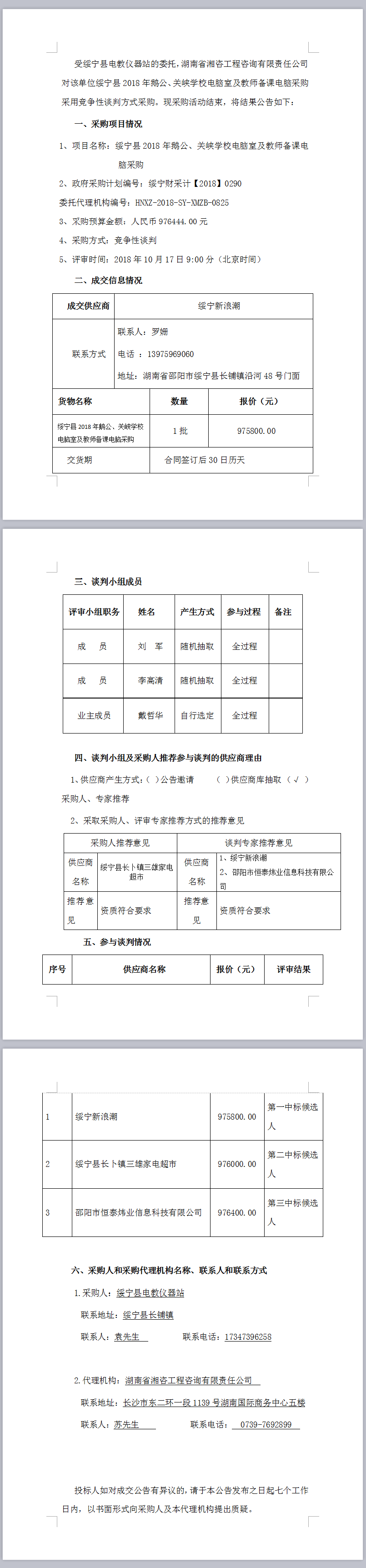 綏寧縣2018年鵝公、關(guān)峽學(xué)校電腦室及教師備課電腦采購(gòu)談判成交公告