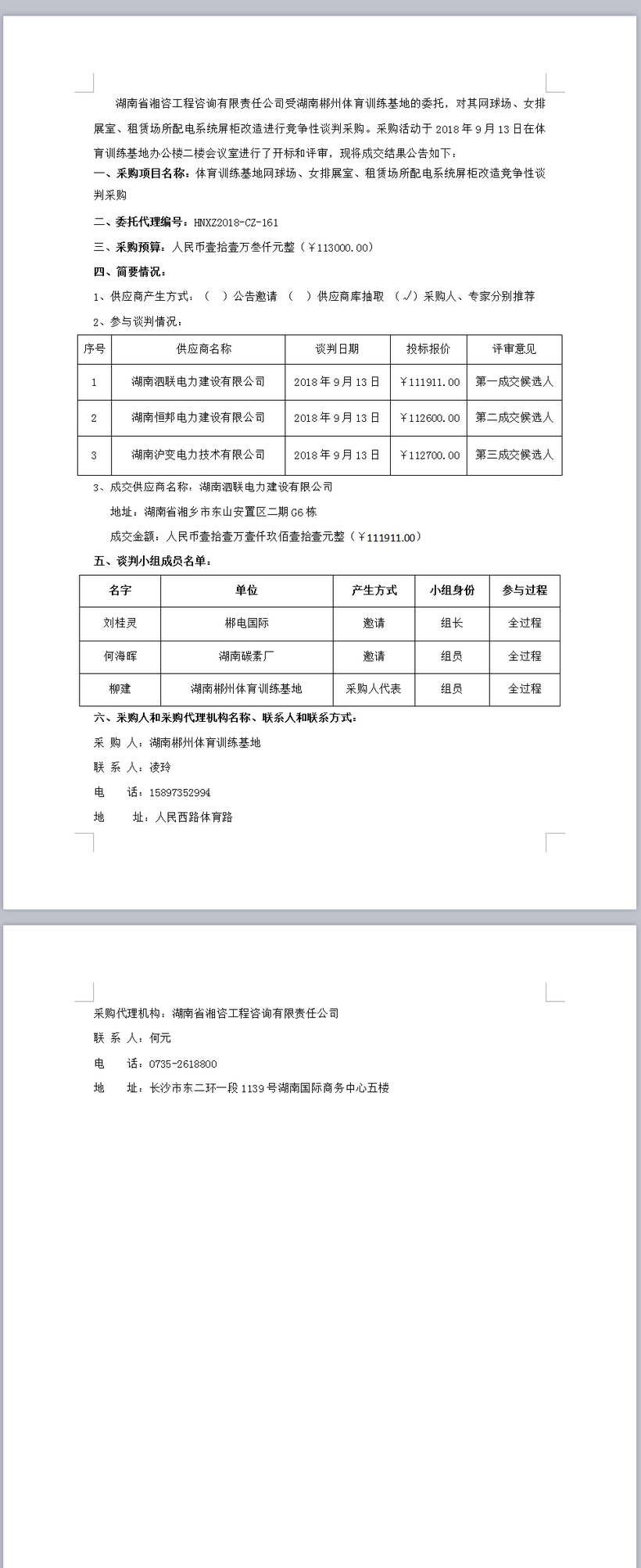 體育訓(xùn)練基地網(wǎng)球場、女排展室、租賃場所配電系統(tǒng)屏柜改造競爭性談判采購成交公告