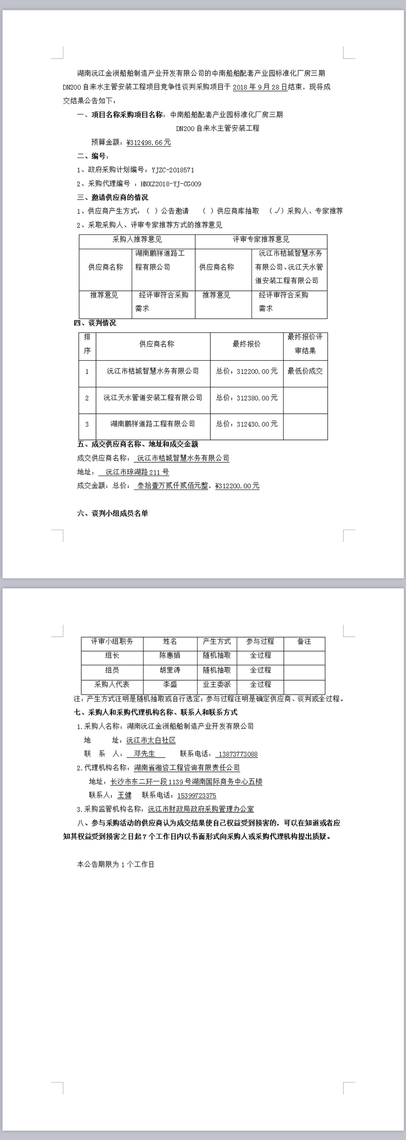 中南船舶配套產(chǎn)業(yè)園標(biāo)準(zhǔn)化廠房三期DN200自來水 主管安裝工程項目競爭性談判成交結(jié)果公告