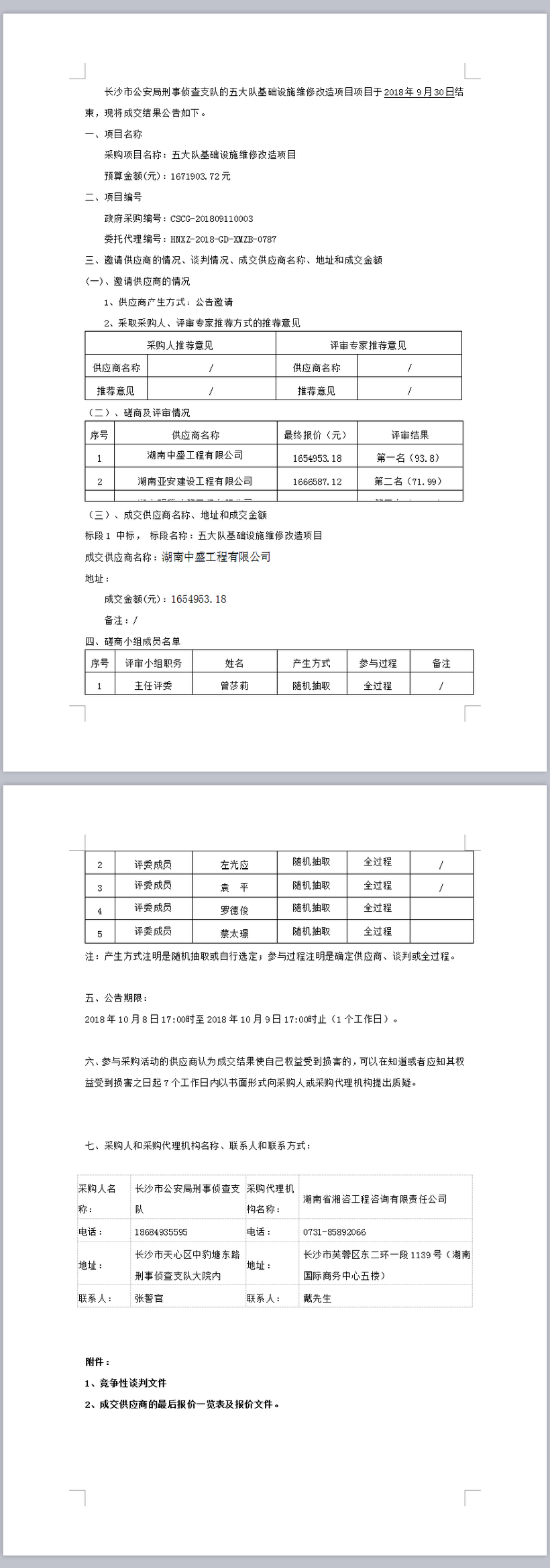 長(zhǎng)沙市公安局刑事偵查支隊(duì)五大隊(duì)基礎(chǔ)設(shè)施維修改造項(xiàng)目結(jié)果公告