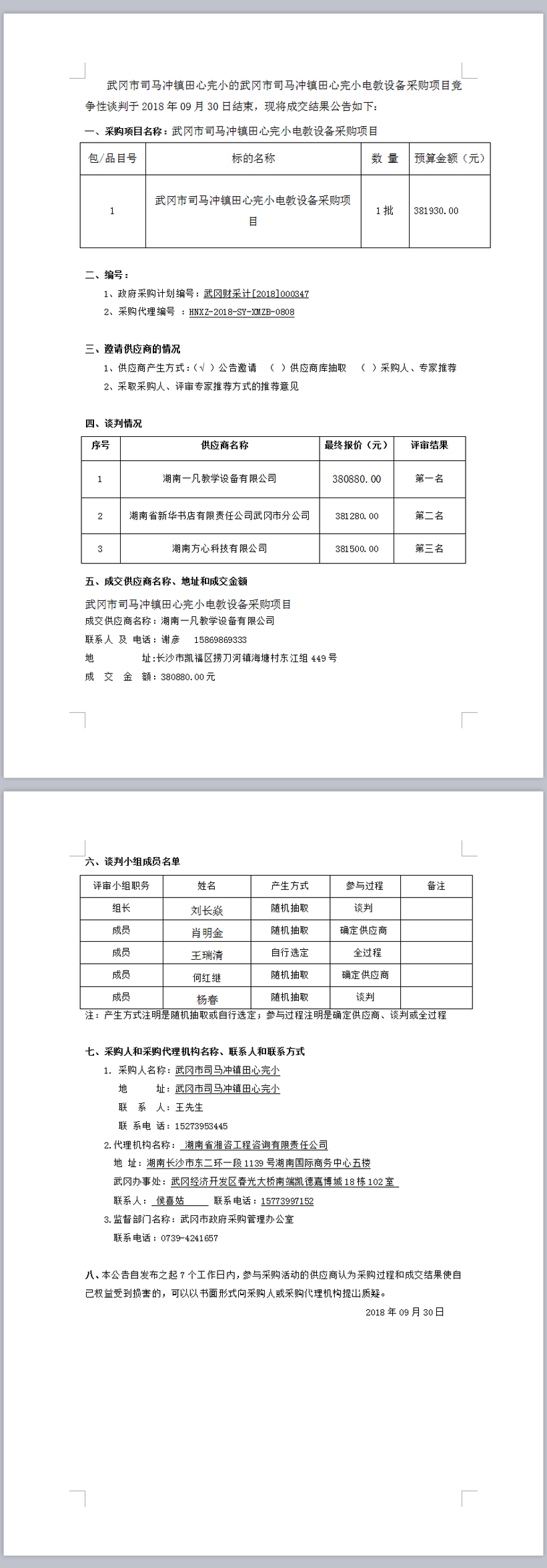 武岡市司馬沖鎮(zhèn)田心完小電教設(shè)備采購項(xiàng)目 競爭性談判成交結(jié)果公
