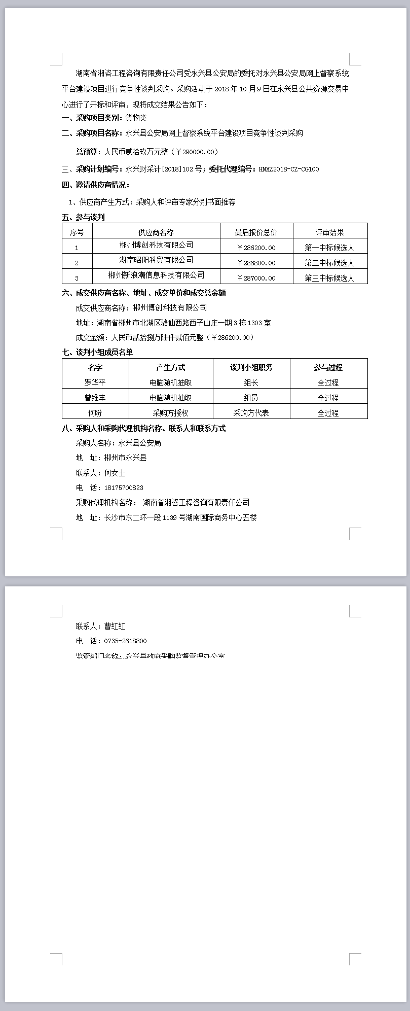 永興縣公安局網(wǎng)上督察系統(tǒng)平臺(tái)建設(shè)項(xiàng)目競(jìng)爭(zhēng)性談判采購(gòu)成交公告