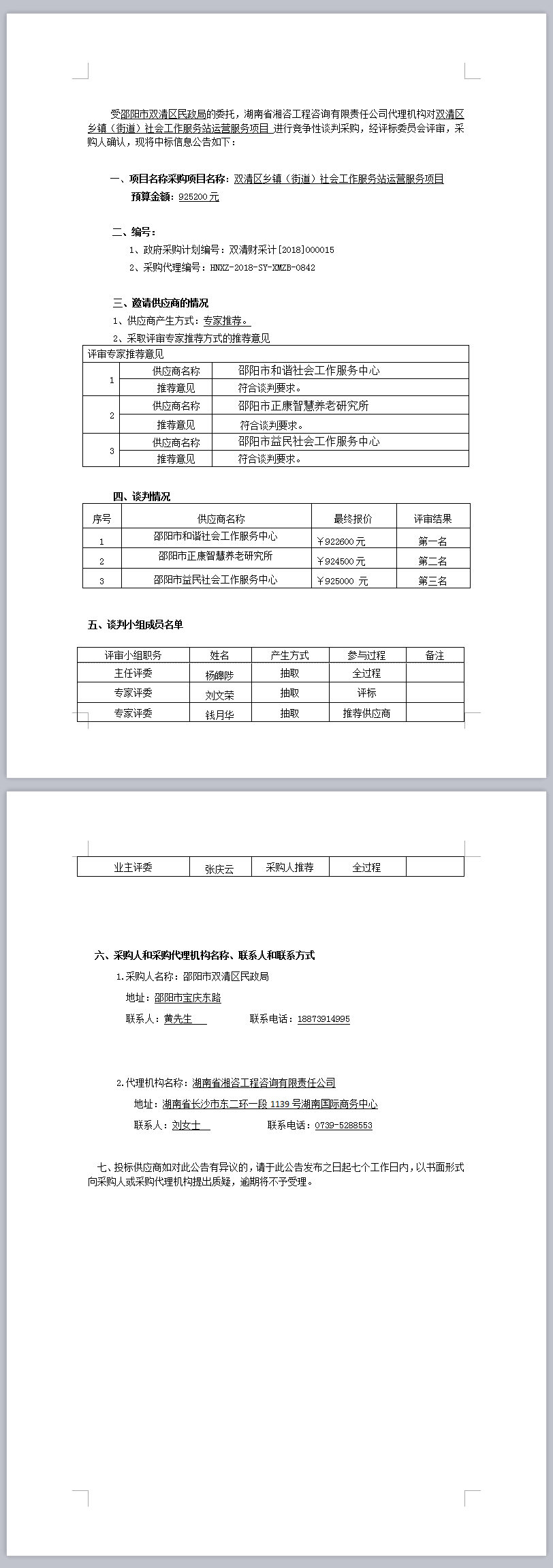 湖南省雙清區(qū)鄉(xiāng)鎮(zhèn)(街道)社會(huì)工作服務(wù)站運(yùn)營(yíng)服務(wù)項(xiàng)目競(jìng)爭(zhēng)性談判成交公告