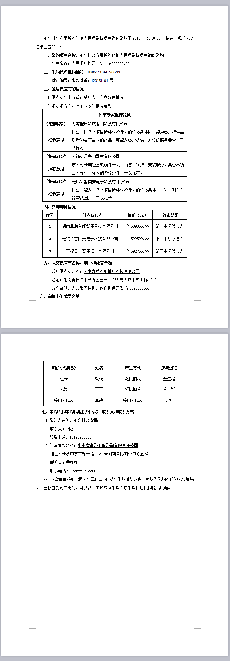 永興縣公安局智能化槍支管理系統(tǒng)項目詢價采購成交結(jié)果公告