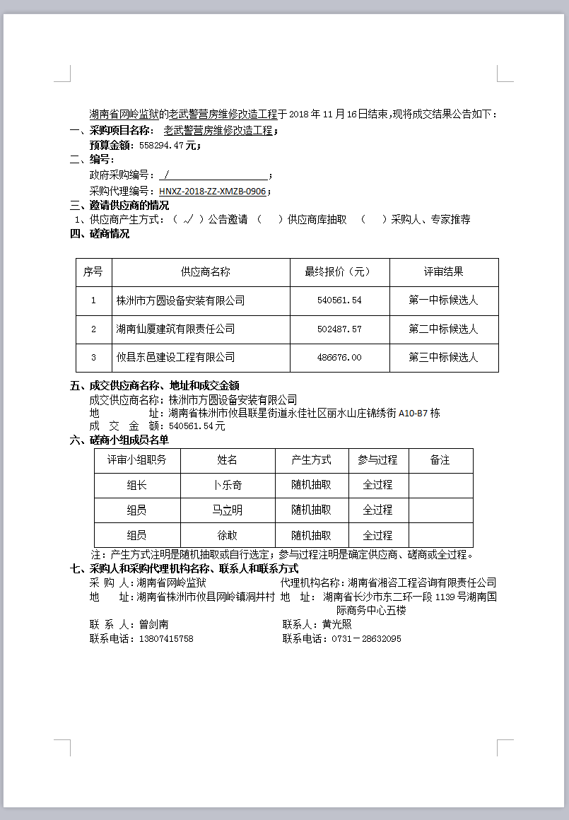 老武警營(yíng)房維修改造工程成交結(jié)果公告