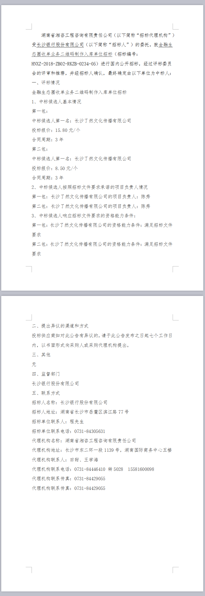 金融生態(tài)圈收單業(yè)務(wù)二維碼制作入庫(kù)單位招標(biāo)中標(biāo)結(jié)果公告