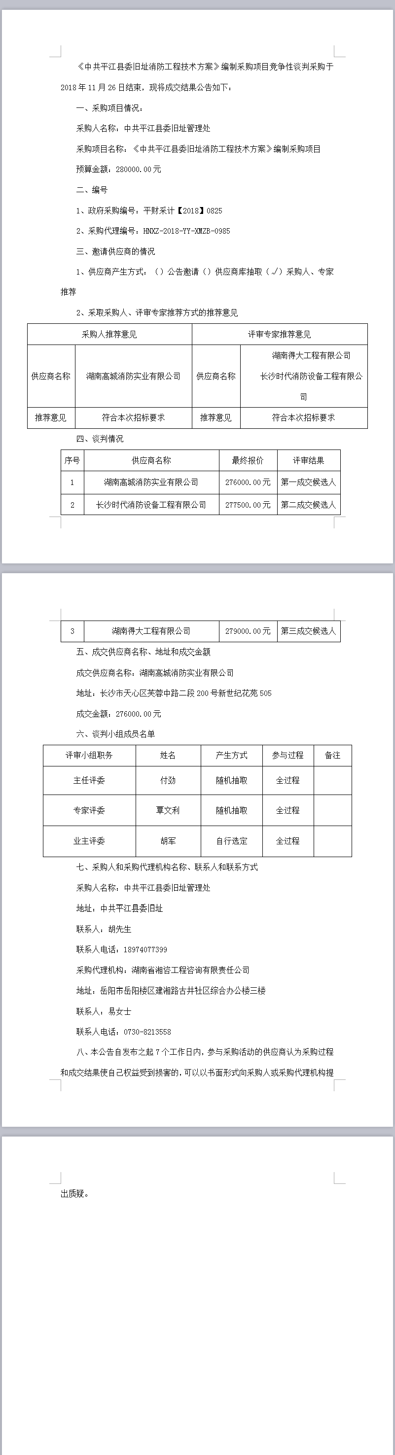 《中共平江縣委舊址消防工程技術(shù)方案》編制采購項目競爭性談判成交結(jié)果公告