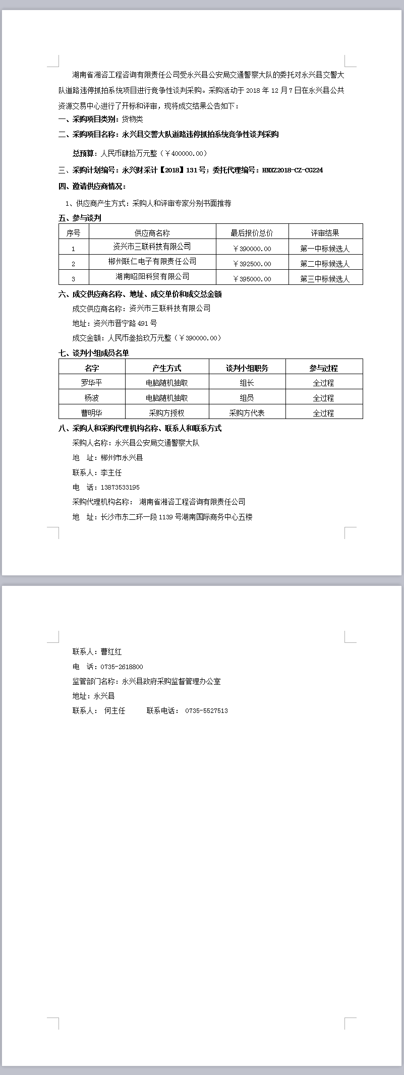 永興縣交警大隊(duì)道路違停抓拍系統(tǒng)競(jìng)爭(zhēng)性談判采購成交公告