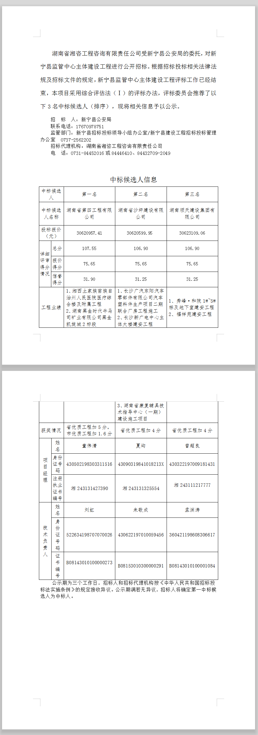 新寧縣監(jiān)管中心主體建設(shè)工程招標(biāo)投標(biāo)信息公示表