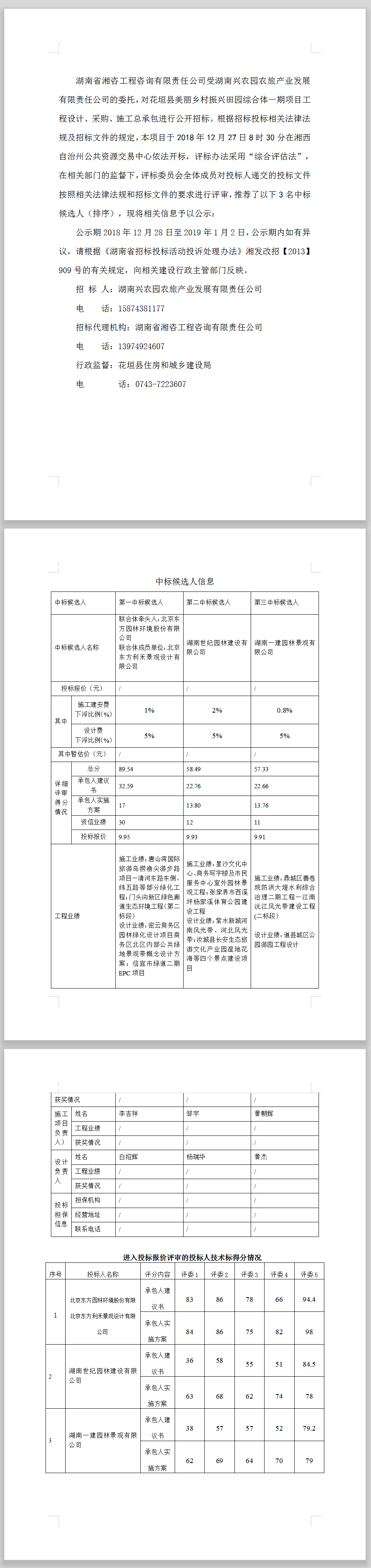 花垣縣美麗鄉(xiāng)村振興田園綜合體一期項目工程設計、采購、施工總承包中標候選人公示