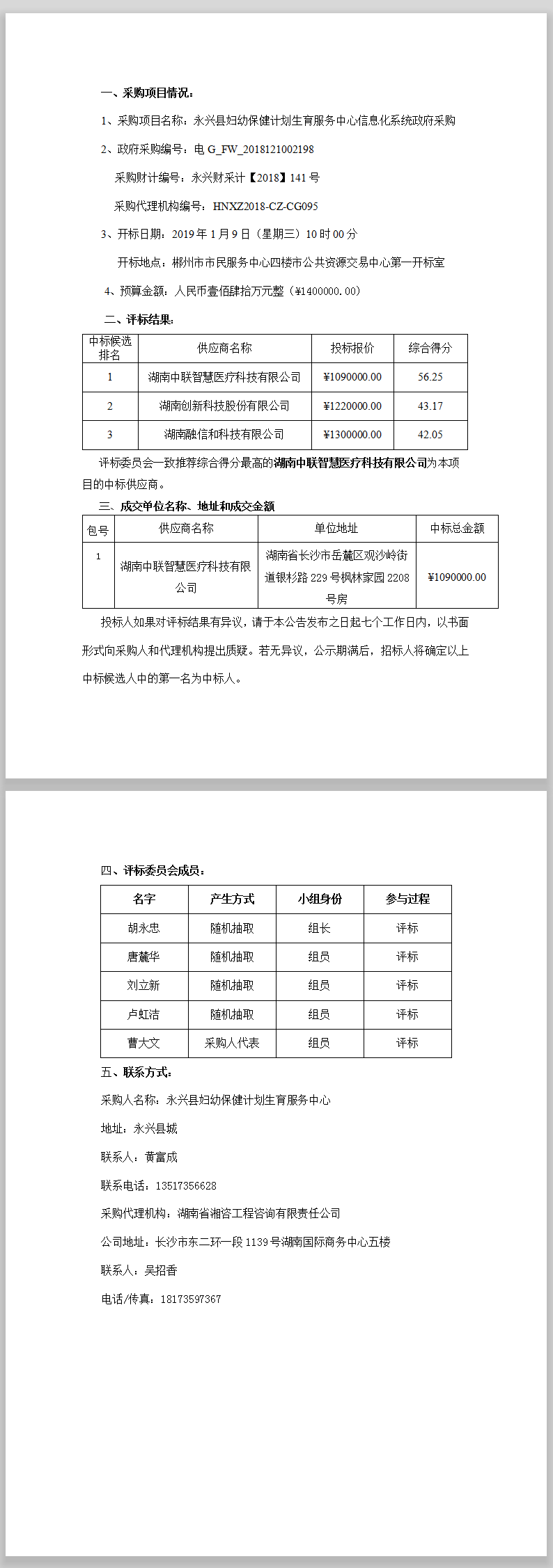 永興縣婦幼保健計(jì)劃生育服務(wù)中心信息化系統(tǒng) 政府采購(gòu)中標(biāo)結(jié)果公示