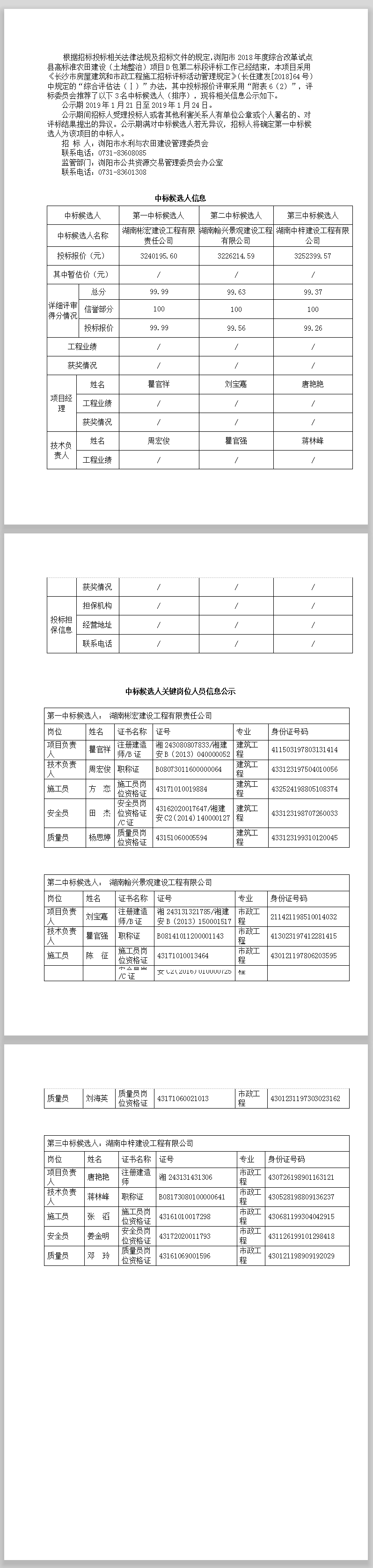 瀏陽市2018年度綜合改革試點(diǎn)縣高標(biāo)準(zhǔn)農(nóng)田建設(shè)(土地整治)項(xiàng)目D包第二標(biāo)段 中標(biāo)候選人公示