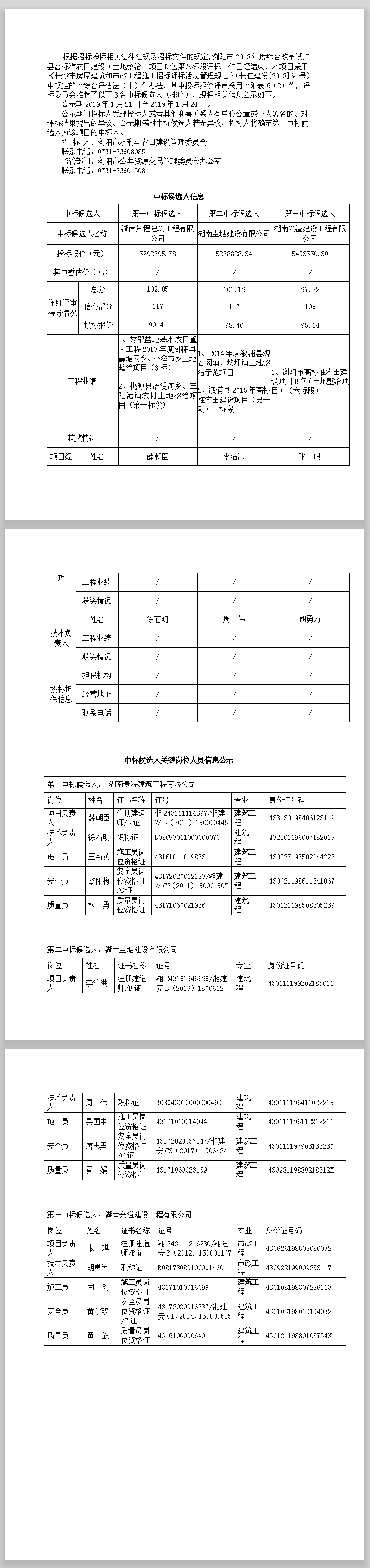 瀏陽市2018年度綜合改革試點(diǎn)縣高標(biāo)準(zhǔn)農(nóng)田建設(shè)(土地整治)項(xiàng)目D包第八標(biāo)段 中標(biāo)候選人公示