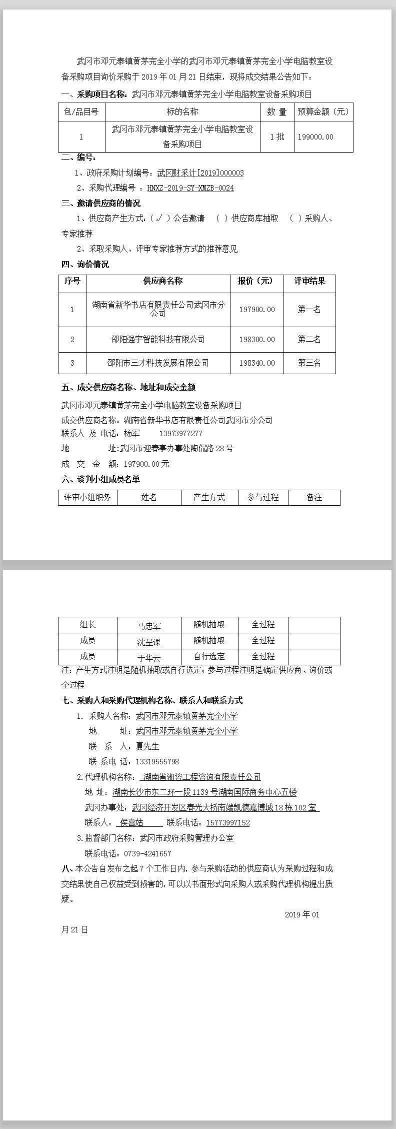 武岡市鄧元泰鎮(zhèn)黃茅完全小學(xué)電腦教室設(shè)備采購(gòu)項(xiàng)目詢價(jià)成交結(jié)果公告