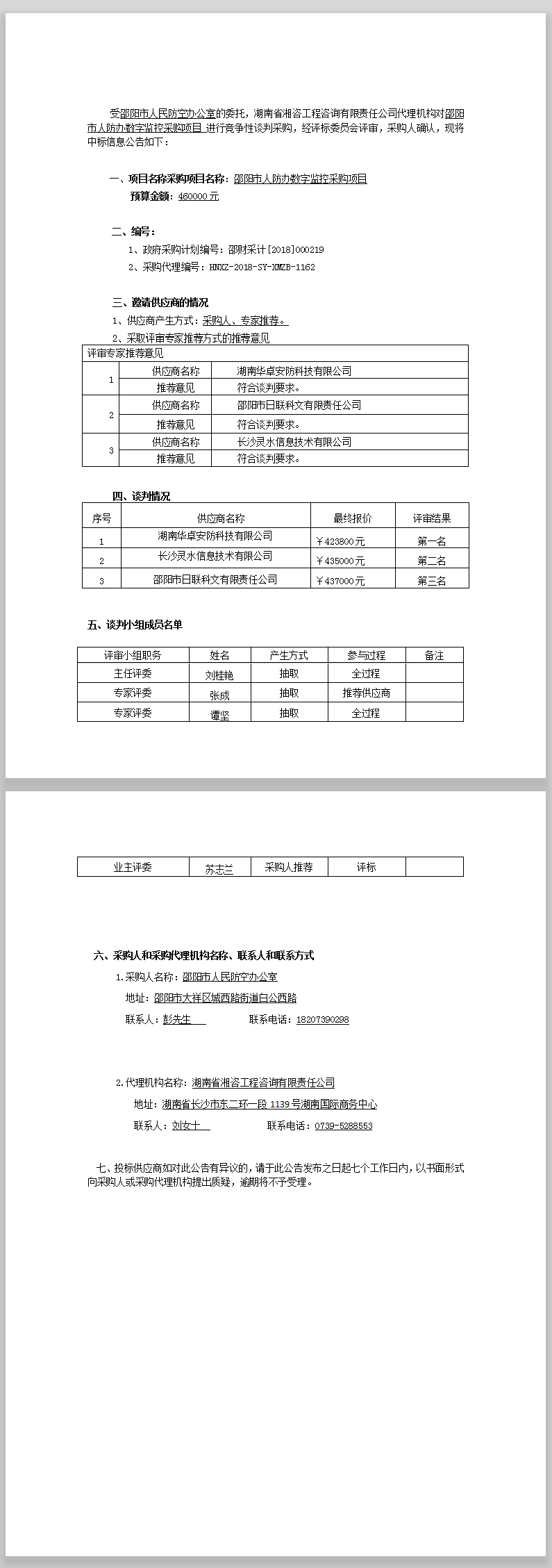 邵陽市人防辦數(shù)字監(jiān)控采購項(xiàng)目競爭性談判成交公告