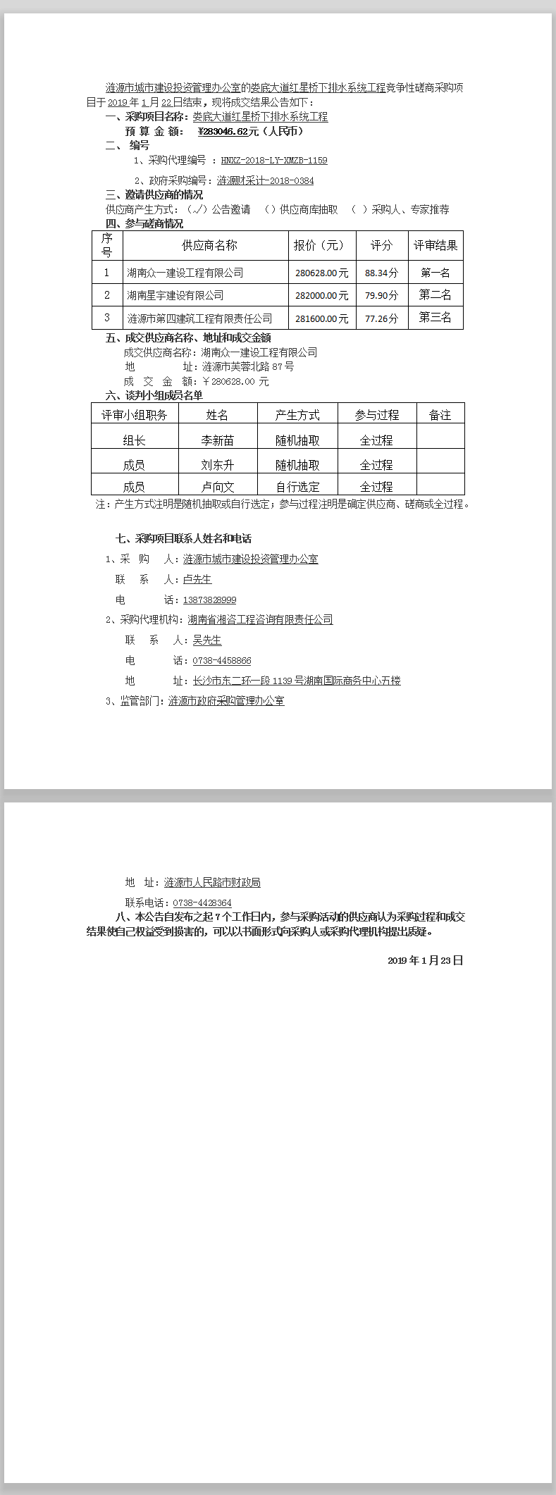 婁底大道紅星橋下排水系統(tǒng)工程 競爭性磋商成交結(jié)果公告