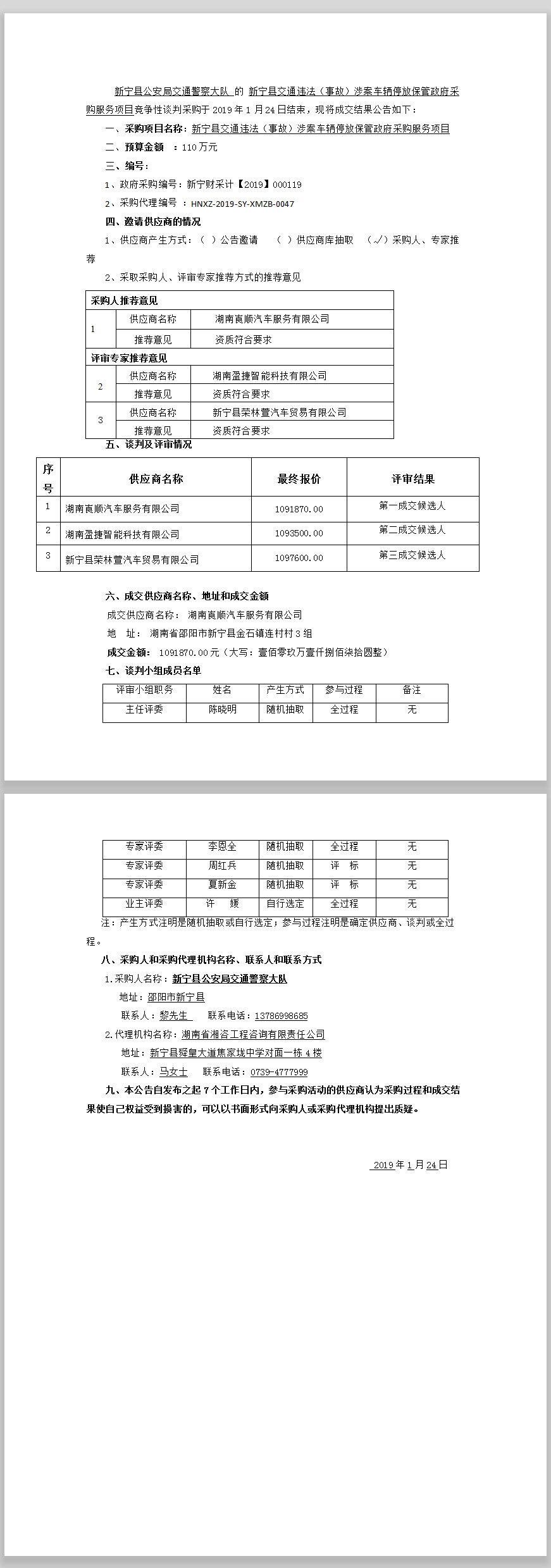 新寧縣交通違法(事故)涉案車輛停放 保管政府采購(gòu)服務(wù)項(xiàng)目 競(jìng)爭(zhēng)性談判成交結(jié)果公告