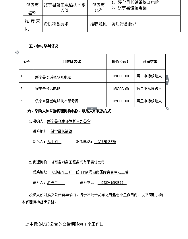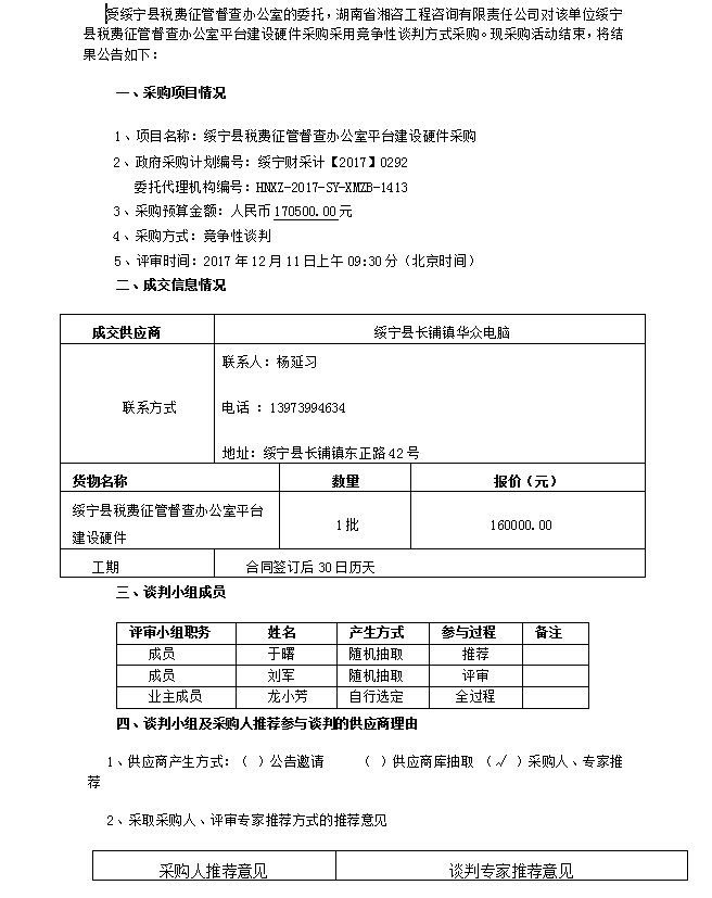 綏寧縣稅費(fèi)征管督查辦公室平臺(tái)建設(shè)硬件采購(gòu)談判成交公告