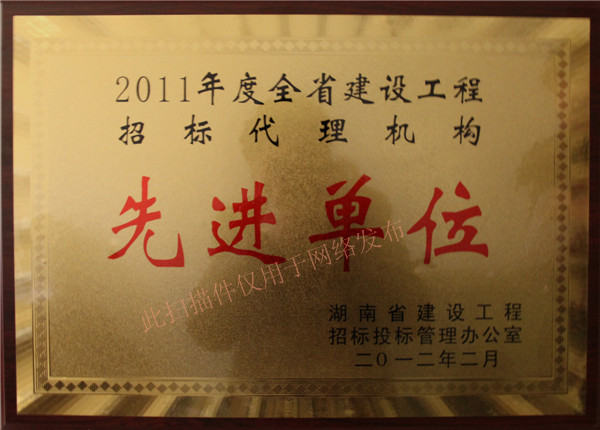 熱烈慶祝我司榮獲2011年度全省建設(shè)工程招標(biāo)代理機(jī)構(gòu)先進(jìn)單位