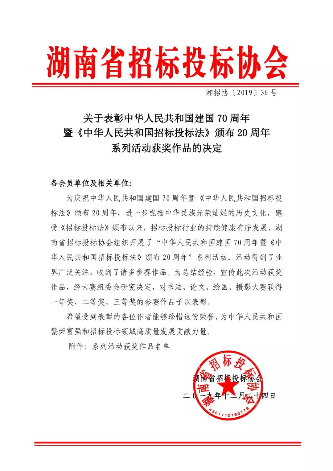 【喜訊】熱烈祝賀我司王佳勇榮獲湖南省招標投標協(xié)會書法大賽二等獎