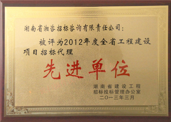 熱烈慶祝我司榮獲2012年度全省建設工程招標代理機構先進單位