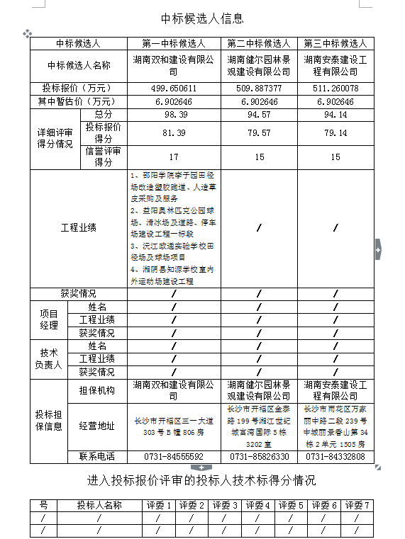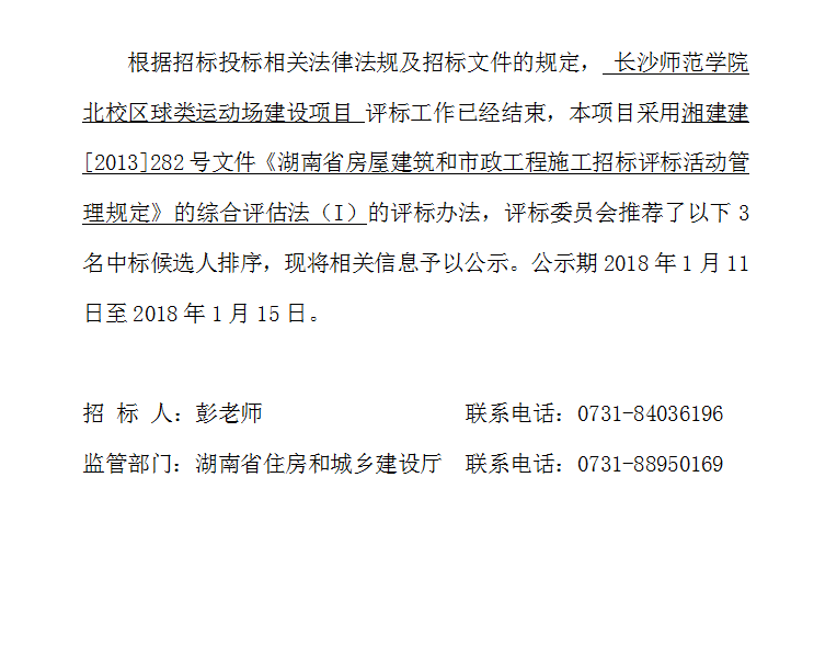 長沙師范學院北校區(qū)球類運動場建設項目招標投標信息公示表