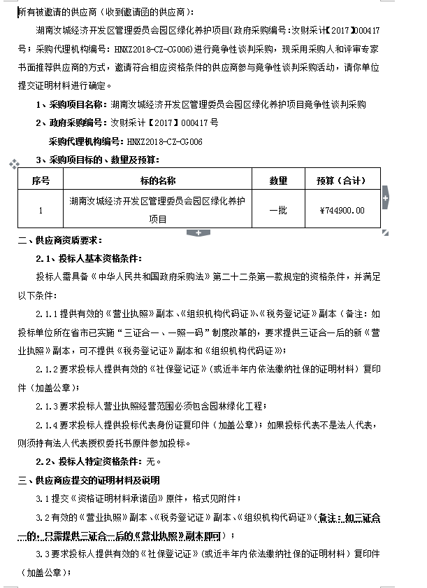 湖南汝城經(jīng)濟(jì)開發(fā)區(qū)管理委員會(huì)園區(qū)綠化養(yǎng)護(hù)項(xiàng)目競(jìng)爭(zhēng)性談判采購(gòu)談判邀請(qǐng)通知
