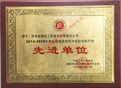 【喜訊】熱烈慶祝我司榮獲2014-2015年全國建筑市場與招標(biāo)投標(biāo)行業(yè)先進(jìn)單位