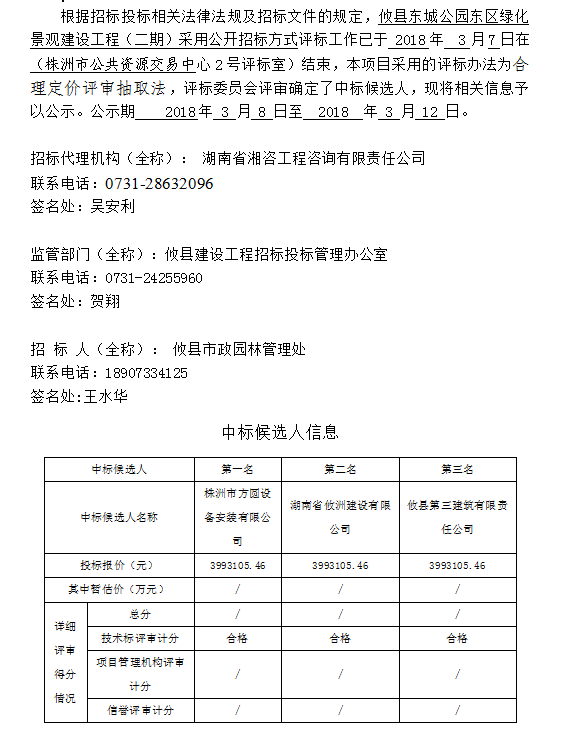 攸縣東城公園東區(qū)綠化景觀建設(shè)工程(二期)招標(biāo)投標(biāo)信息公示表