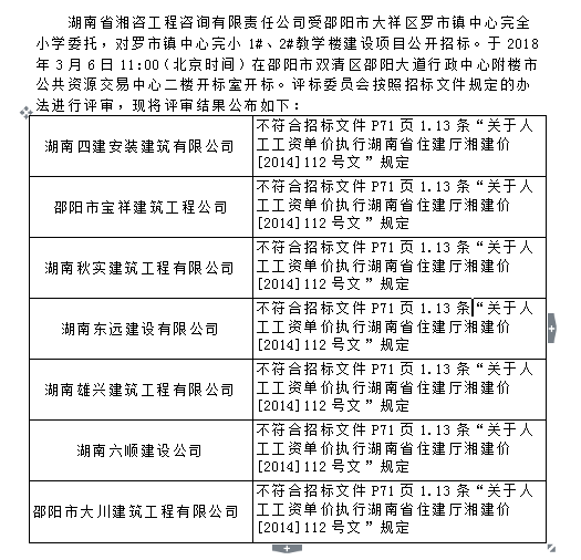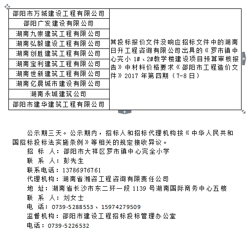羅市鎮(zhèn)中心完小1#、2#教學(xué)樓建設(shè)項目 評審結(jié)論公示