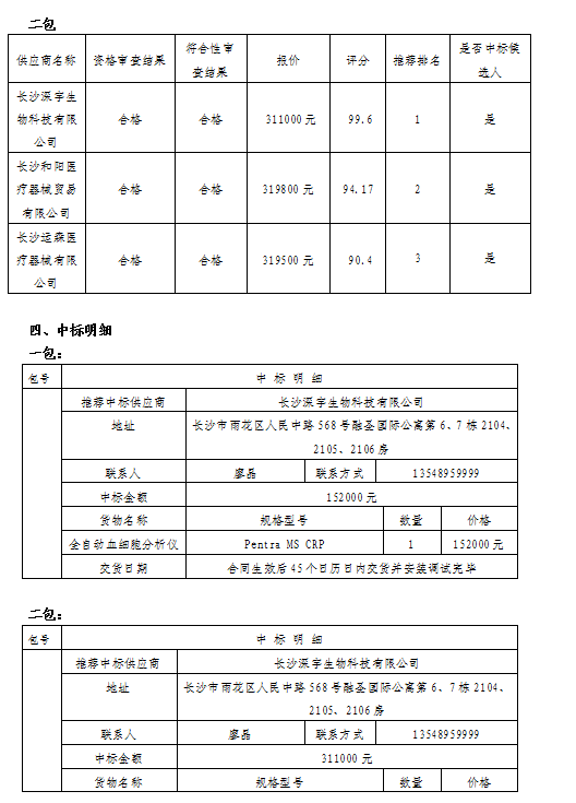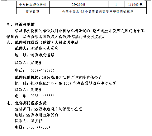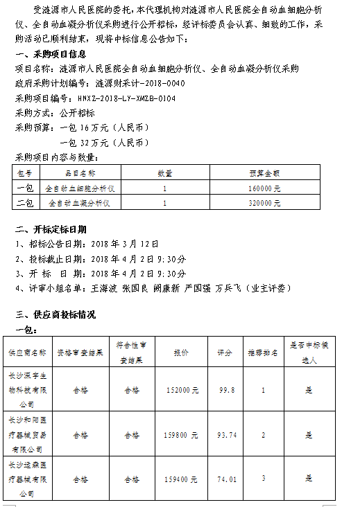 漣源市人民醫(yī)院全自動血細(xì)胞分析儀、全自動血凝分析儀采購中標(biāo)結(jié)果公告