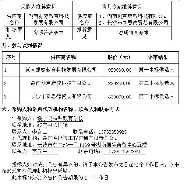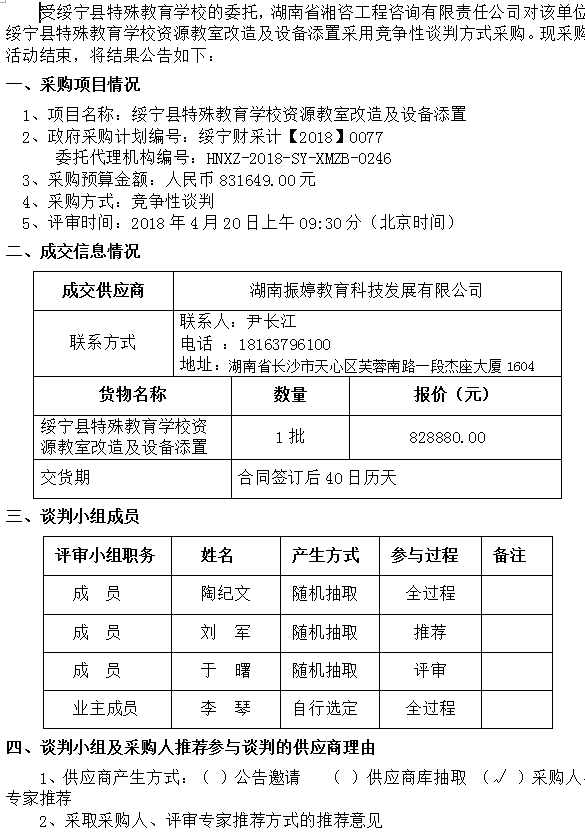 綏寧縣特殊教育學校資源教室改造及設備添置談判成交公告