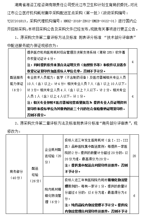 沅江市公立醫(yī)療機構(gòu)耗材集中采購配送定點采購(第一批) 更正公告