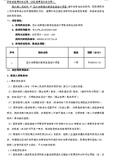 四水治理暖水鎮(zhèn)田莊段設(shè)計(jì)項(xiàng)目競爭性談判采購 邀請通知