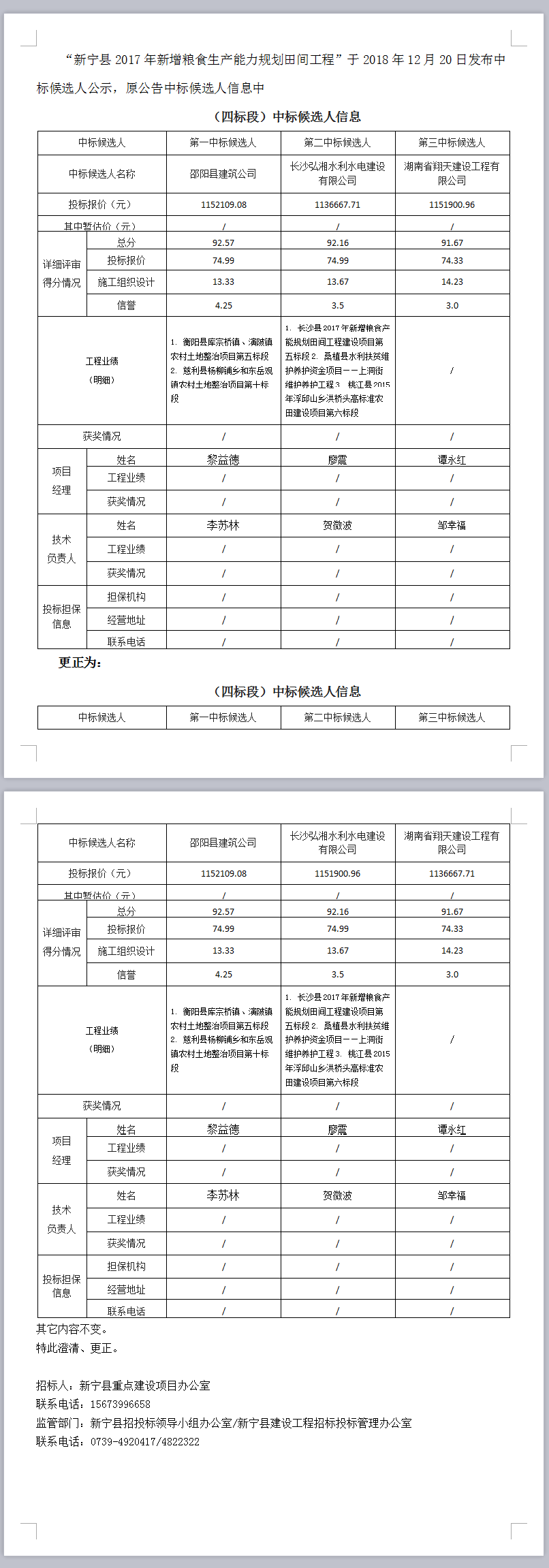 新寧縣2017年新增糧食生產(chǎn)能力規(guī)劃田間工程 中標(biāo)候選人(澄清、更正)公示