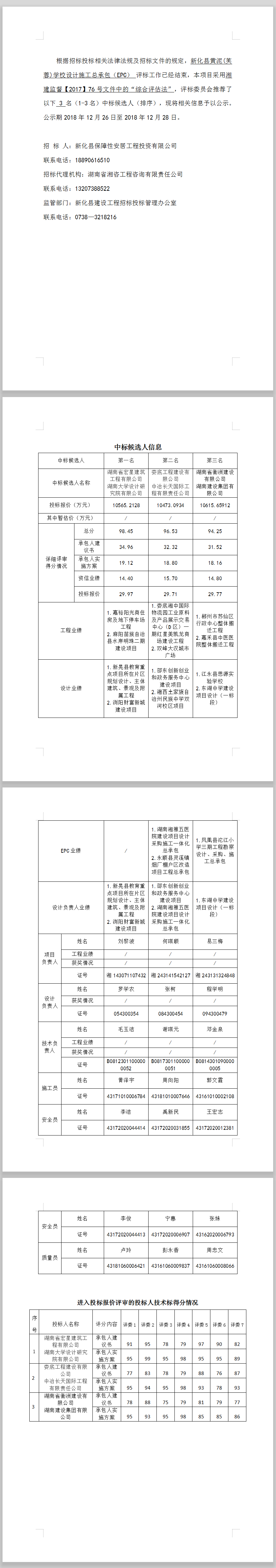 新化縣黃泥(芙蓉)學(xué)校設(shè)計施工總承包(EPC)中標(biāo)候選人公示更正公告