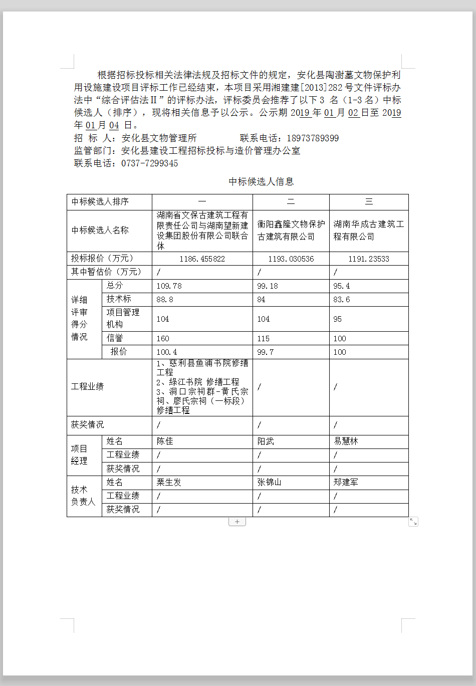 安化縣陶澍墓文物保護利用設(shè)施建設(shè)項目中標候選人公示更正公告